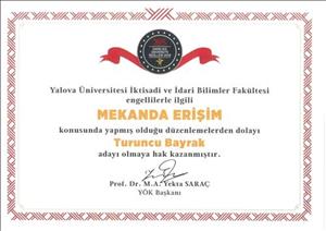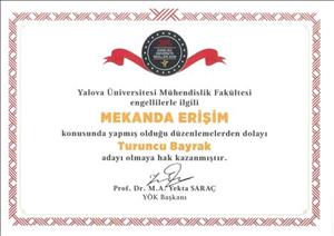 Yalova Üniversitemiz, Yükseköğretim Kurulu tarafından düzenlenen “2019 Yılı Engelsiz Üniversite Ödülleri” kapsamında “Mekânda Erişim” alanında yapmış olduğu düzenlemelerden dolayı “Turuncu Bayrak” adayı olmaya hak kazandı.